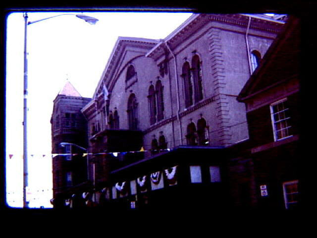 Woonsocket Centennial Celebration in 1988. Harris Hall decorated for the Centennial at one of the events, the Main