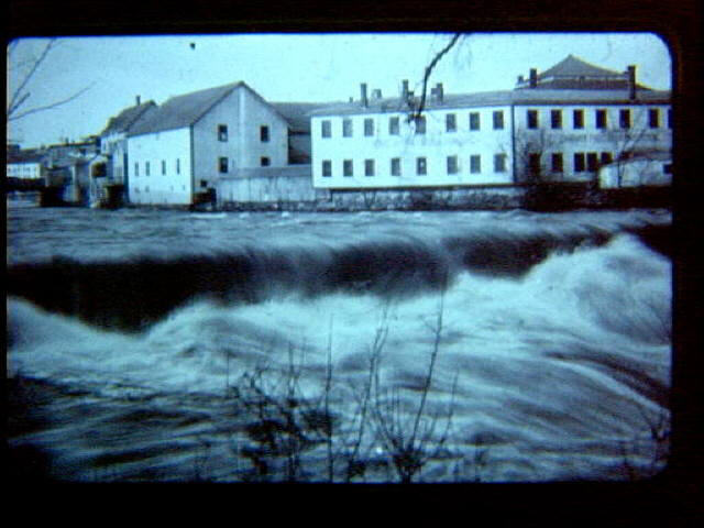 FL 6 c. 1900 Woonsocket Falls with floodwaters pouring over the old dam. View looking towards River Street.