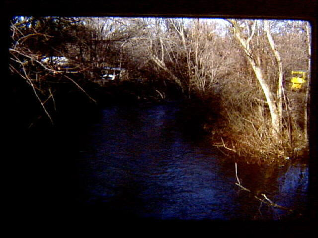 RP 17 1986 December The Mill River which flows into Woonsocket from Blackstone, Mass. Small river, the first river in the city used to power a factory (the Social Mill). Photo taken from East Blackstone.