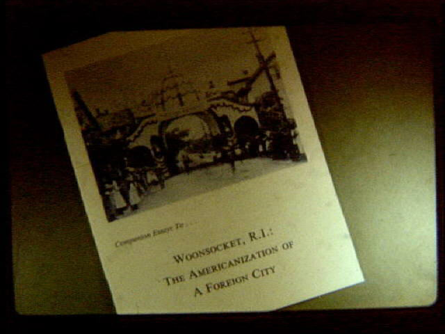 FC 145 1981 Booklet of essays accompanying a slide presentation sponsored by Rhode Island Committee for the Humanities called "Woonsocket, Rhode Island: The Americanization of a Foreign City."