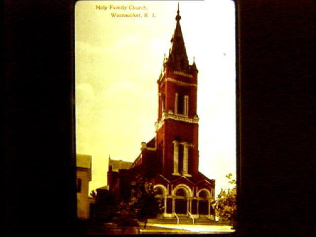 CH 174 1915 Holy Family parish on South Main Street. Established in 1902. Founding pastor was Rev. Joseph S. Fortin. Church designed by Walter F. Fontaine, dedicated January 22, 1911.
