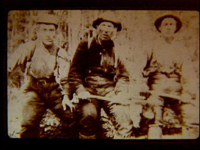 FC 86 c. 1920 Three French Canadian lumberjacks with axes in St. Gabriel, P.Q.