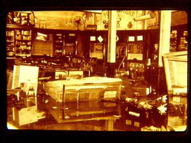 Flood in the Social area showing interior of Savard & Galant Drug Store.
