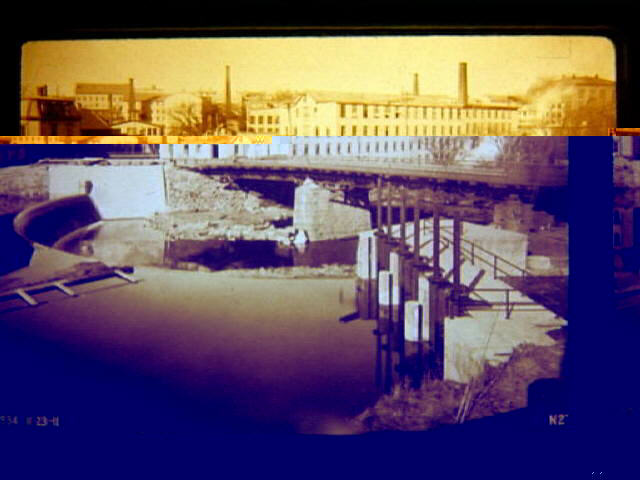 Construction of the Bernon dam showing the mill trench gate of the Woonsocket Company.
