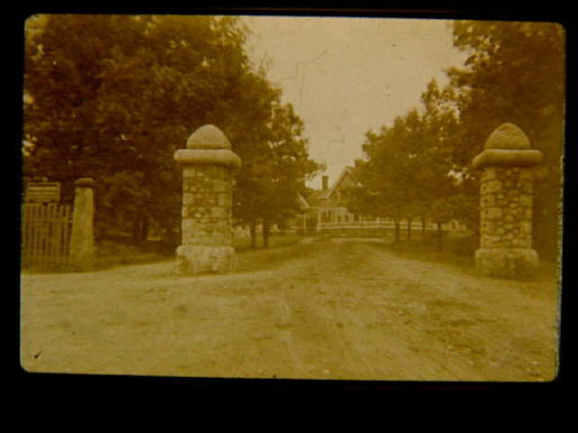 BU 328 c. 1915 The Woonsocket Hospital entrance with stone pillars.