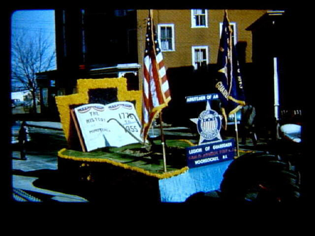 EV 48 1955 Mardi Gras parade showing Carl O. Johnson Veterans Post float on Lincoln Street.