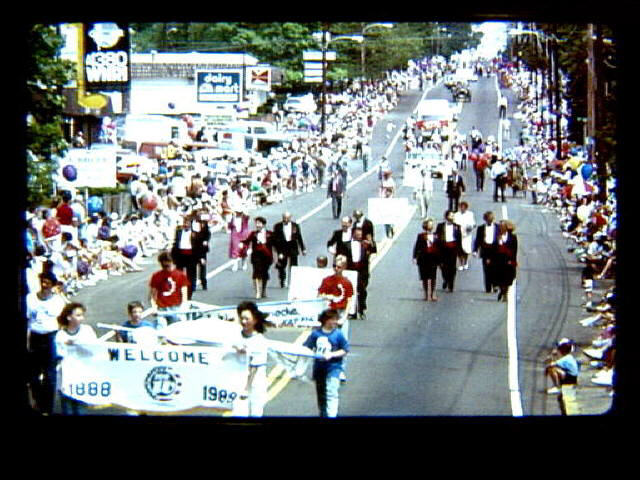 Woonsocket Centennial Celebration in 1988. Parade in June 1988. Dignitaries leading the parade near WNRI on