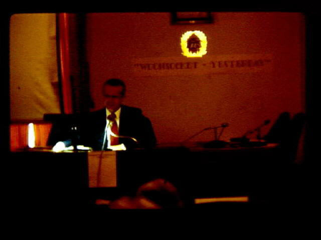 EV 196 1988 Woonsocket Centennial Celebration in 1988. Marcel Fortin introducing one of the centennial book authors at one of the lectures sponsored by the Woonsocket Historical Society.