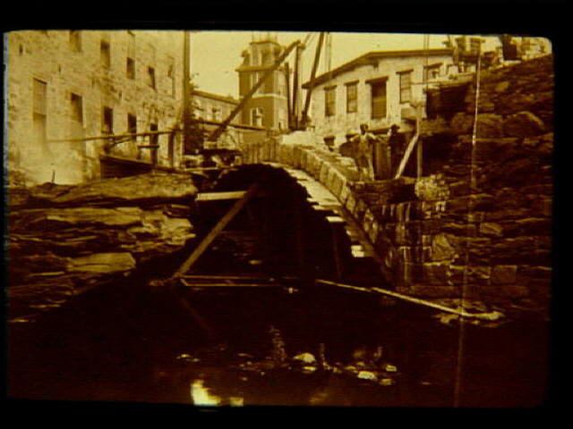 BG 26 1903 Construction of the Globe Bridge. Close up view of east arch from river level.