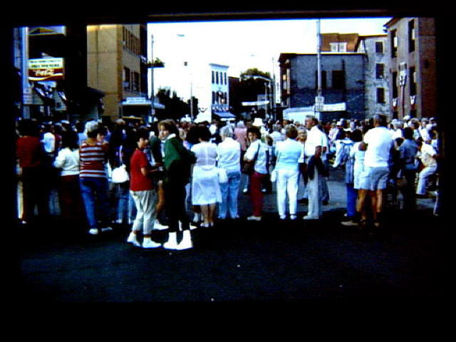 Woonsocket Centennial Celebration in 1988. Main Street Block Party during the centennial year. Large crowd at
