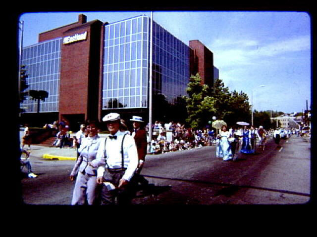 EV 256 1988 Woonsocket Centennial Celebration in 1988. Parade in June 1988. Marchers dressed in 1890's garb.