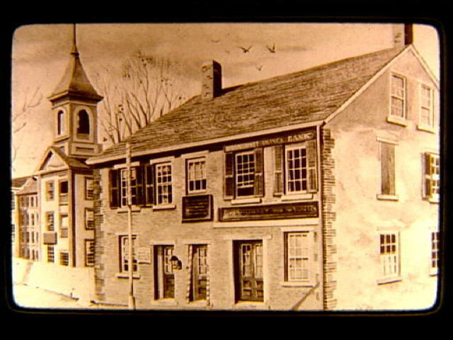 MS 23 1845 (c) View of Main Street corner of Main and Bernon Streets showing a bank building and a post office.