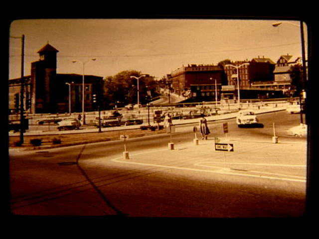 View of Main Street Market Square showing the municipal parking lot former site of a complex of mills until the early