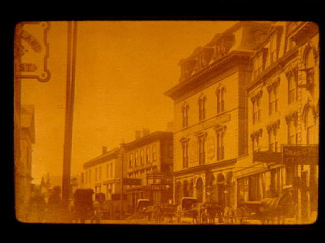 MS 65 1900 (c) View of Main Street from Depot Square showing Cook's Block, horses, carriages, wagons, etc.