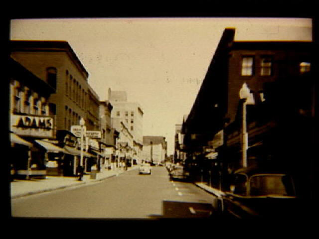 View of Main Street looking towards Depot Square. Foreground, left, Adams Drug Store; to the right is the