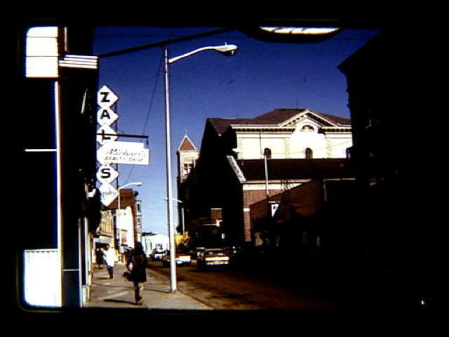 View of Main Street looking toward Depot Square from vicinity of Zale's Jewelers. Harris Institute, Longley Building,