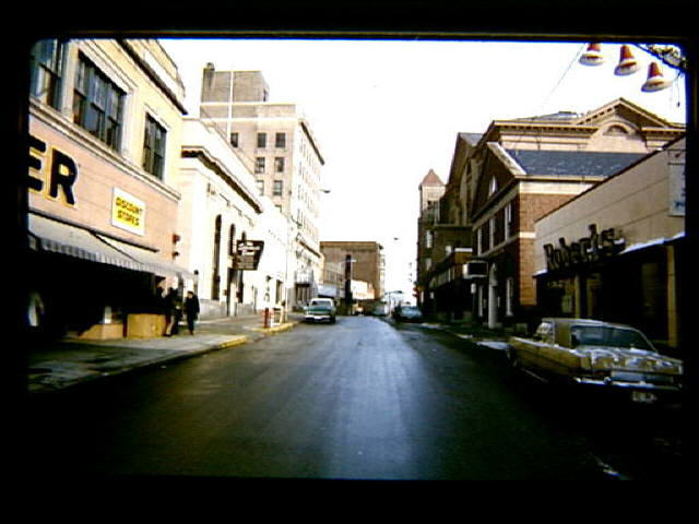 up to the Longley Building. On right is Robert's, Old Colony Bank, City Hall, and the Hope Building in the distance.