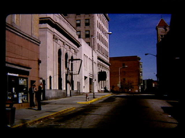 Longley Building on left. Pedestrians. Tower of Granite Block on right.