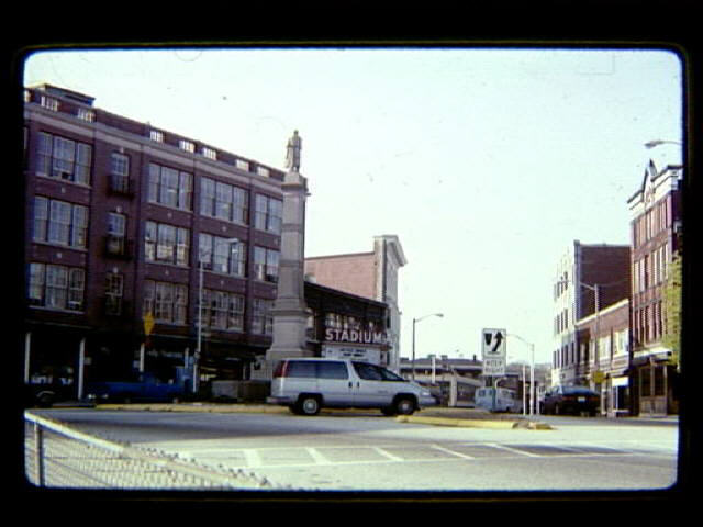 Main Street Monument Square area looking down Main Street towards Depot Square. General view. Stadium Building