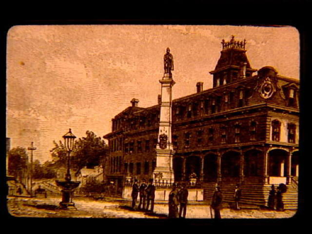 MS133 1880's Monument Square at Main Street looking towards North Main Street. Monument, Monument House and street view.