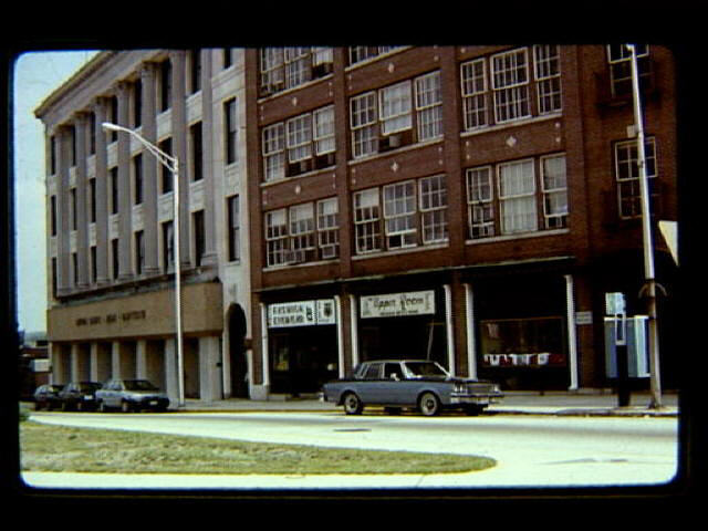 MS141 1993 August Main Street at Monument Square area showing Stadium Building and L'Union building at ground level.