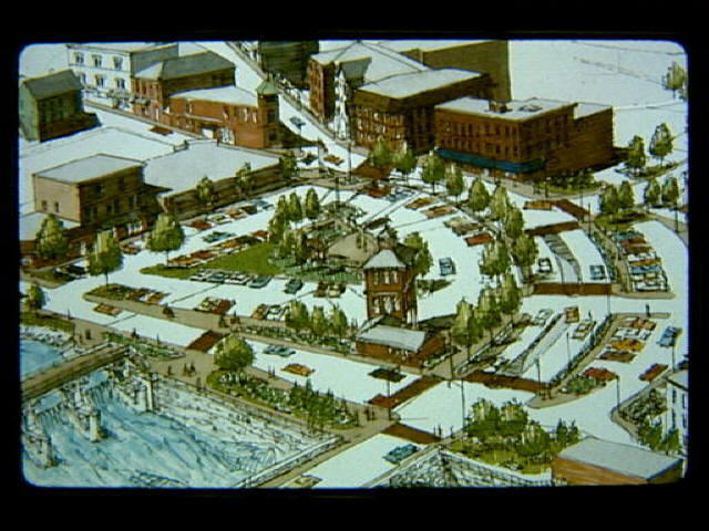 MS206 1993 Market Square plan of the Main Street 2000 corporation. Shows dam, the river, and Market Square.