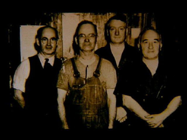 MW 57 1943 October Glenark Worsted mill workers: (l-r) A. Deziel, J. Poirier, J. Coderre, J. Negri.