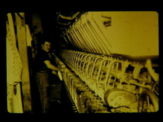 MW 63 1950's French Worsted spinning room showing an operative at his machine.