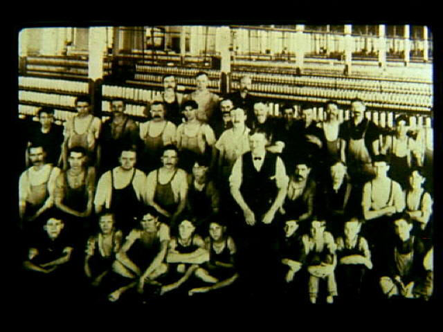 MW 83 1908 Mule room of the Nourse Mill with operatives. Young boys in front row.
