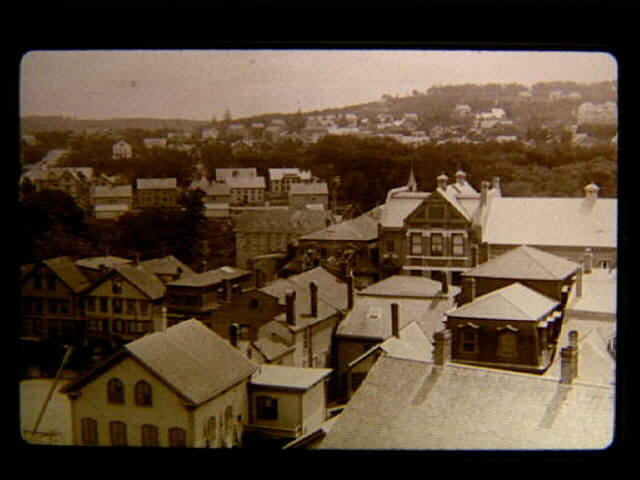 AV 106 1890 August Aerial view of Main Street looking across towards Hamlet and Bernon Heights. Patriot Block in foreground.