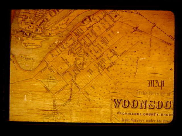 1851 map showing abandoned canal route and mill trenches through Woonsocket Falls and Bernon sections of what
