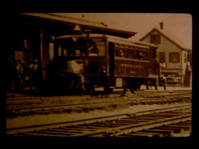 New Haven Mack gas rail bus #9002, a one-car passenger rail car, at the River Street station about to leave for