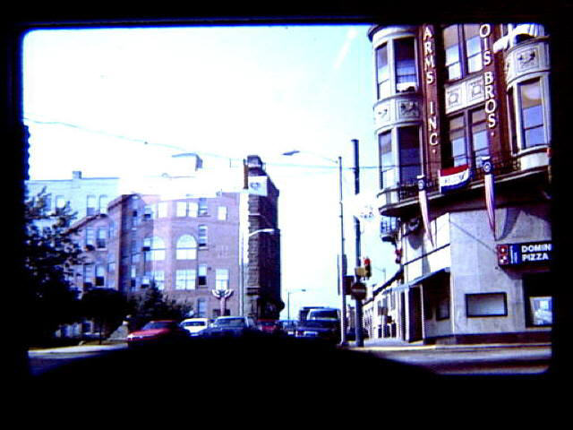 EV 201 1988 Woonsocket Centennial Celebration in 1988. Main Street Block Party during the centennial year. Decorations on Longley Building and Harris Hall.