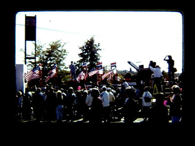 AU 94 1991 Autumnfest, a three-day festival on Columbus Day weekend. Parade crowd inspecting patriotic float.