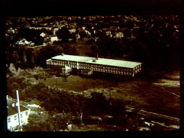 FL 44 1955 August Flood of 1955 showing aerial view of flooded Cherry Brook off Mason Street. Mill building was site of Reliance Plastics.