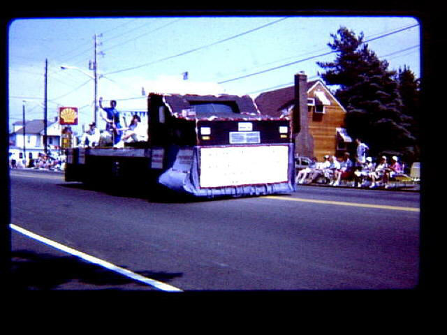 Woonsocket Centennial Celebration in 1988. Parade in June 1988. Float commemorating the old and new post