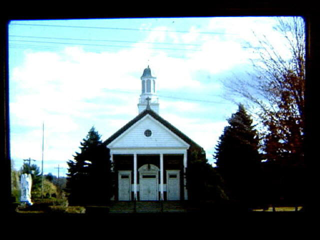 CH 151 1972 Saint Joseph's Church on Mendon Road. Front view of church building completed in 1938. Designed by Walter F. Fontaine, prominent Woonsocket architect. Dedicated September 25, 1938.