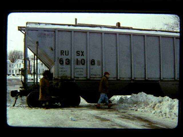 RR 29 1993 February Derailed covered hopper railroad car at the Prospect Street railroad crossing.
