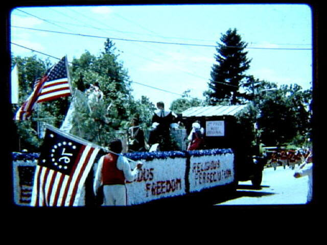 EV 76 1976 Woonsocket US Bicentennial parade showing float depicting religious freedom.