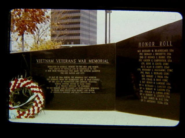 Close up view of Viet Nam monument on Worrall Street. Dedicated in 1984, the monument lists the names of city