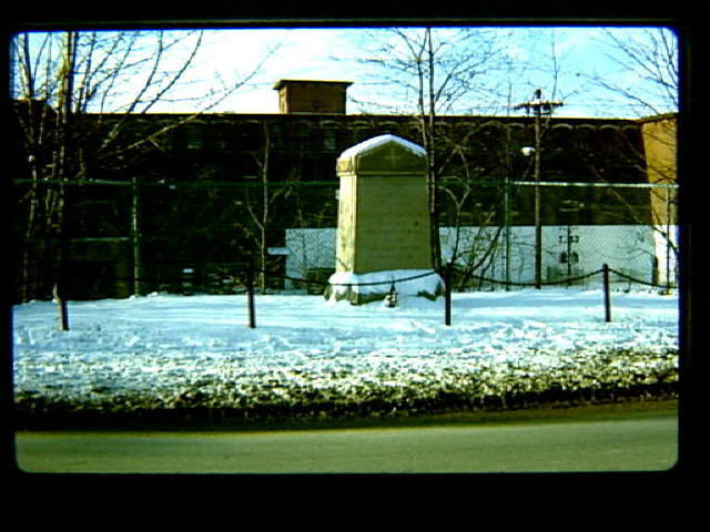 The William Blackstone (Blaxton) monument on Broad Street in Cumberland commemorating the first permanent