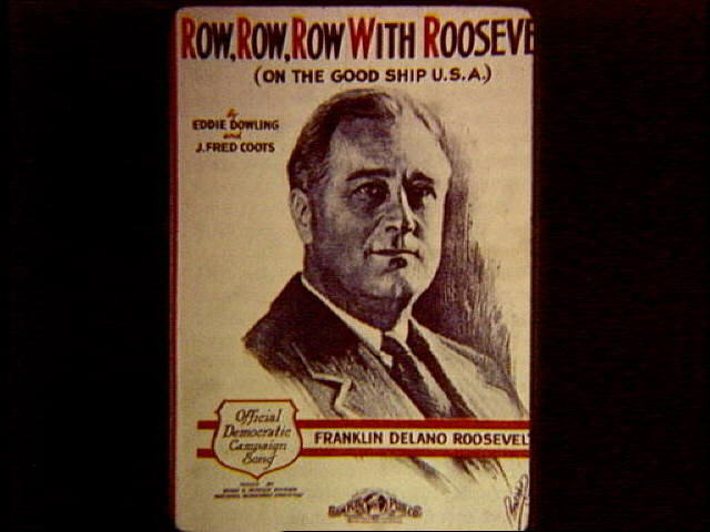 CL 19 c. 1940 Song sheet cover entitled Row Row Row with Roosevelt on the Good Ship USA written by Woonsocket native Eddie Dowling and J. Fred Coots. The song became the official Democratic campaign song.