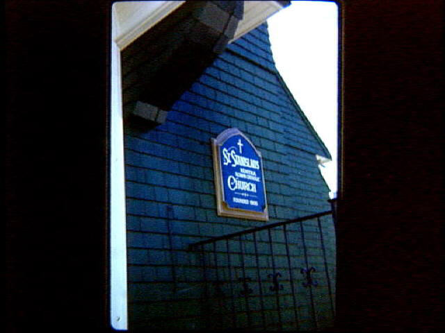 CH 182 1977 St. Stanislaus church on Harris Avenue. Signboard.