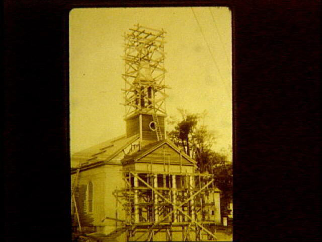 CH 20 1938 Saint James Episcopal church reconstruction. Front entrance and steeple.