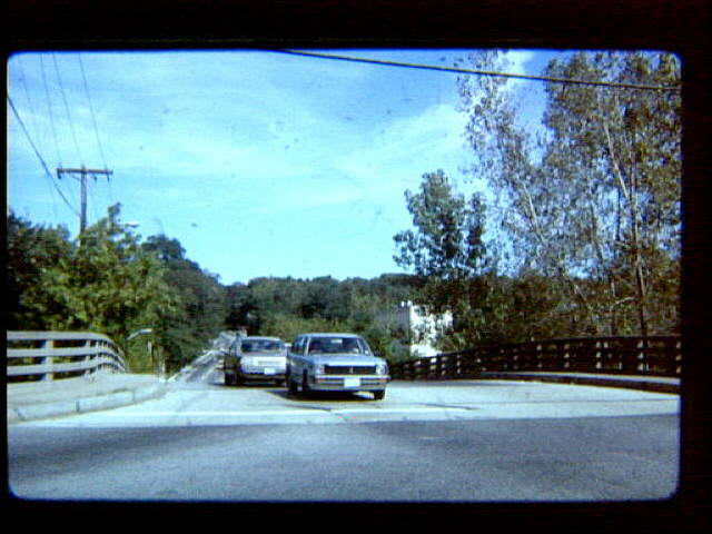 TM 227 1989 Manville Jenckes mill site showing bridge. Mill building straddled the Blackstone River. Was destroyed by a fire in the 1950's.