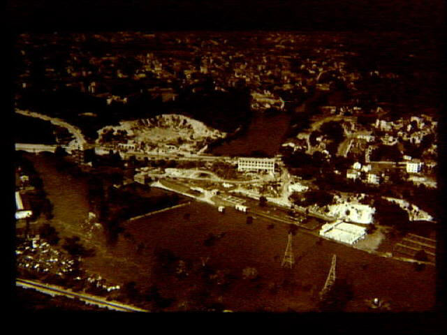 FL 52 1955 August Flood of 1955 showing Hamlet Avenue/Cumberland Hill area flooded by the Blackstone River and Sylvestre's Pond.