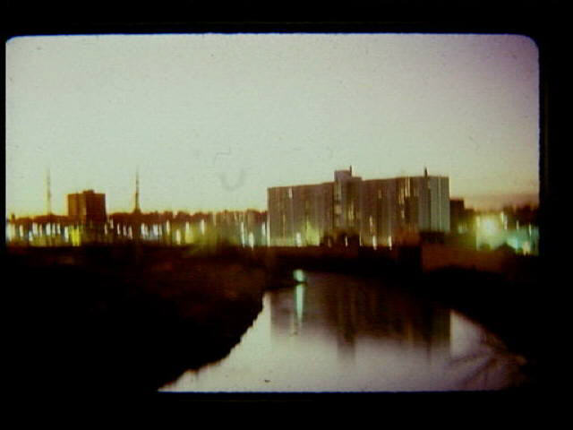 BR 58 1984 Blackstone River at night flowing through Social district. Taken from Kendrick Avenue footbridge.