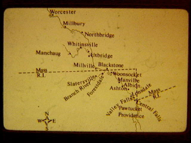 MP 25 1830's Map showing mill villages along the Blackstone River from Worcester to Providence.