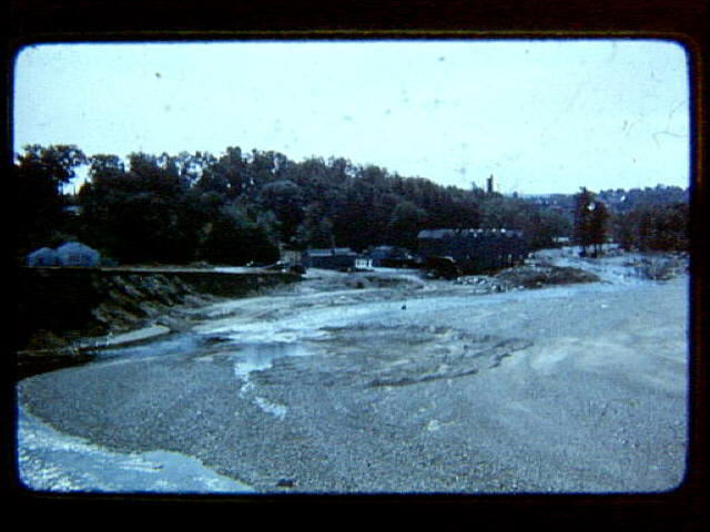 Flood of 1955 showing washed out Privilege Street area and bridge. Photo taken from Precious Blood cemetery.