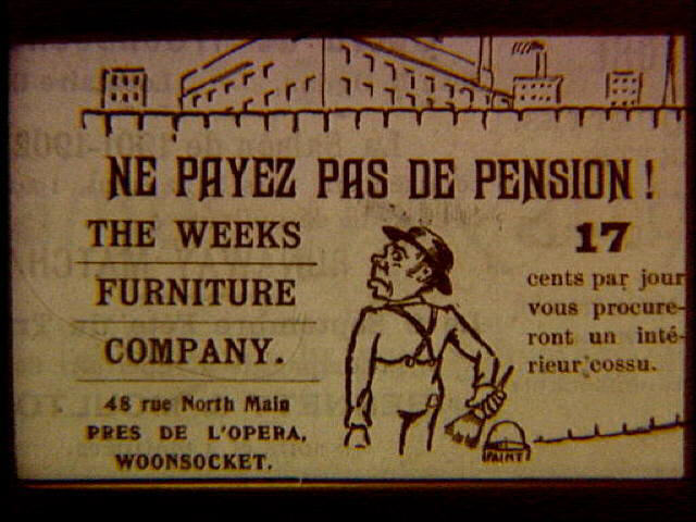 FC 98 1922 An advertisement in French for the Weeks Furniture Company at 48 North Main Street in Woonsocket.